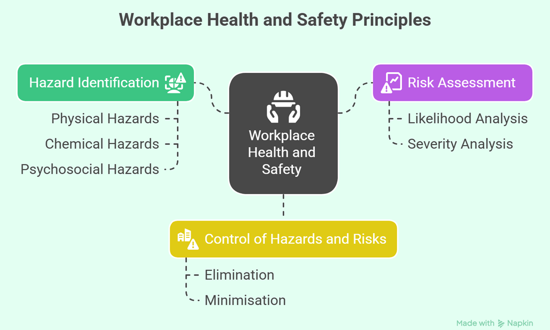 Workplace Health and Safety (WHS) refers to practices designed to prevent injuries, illnesses, or accidents in the workplace. It's a risk-based approach built on three core principles:
